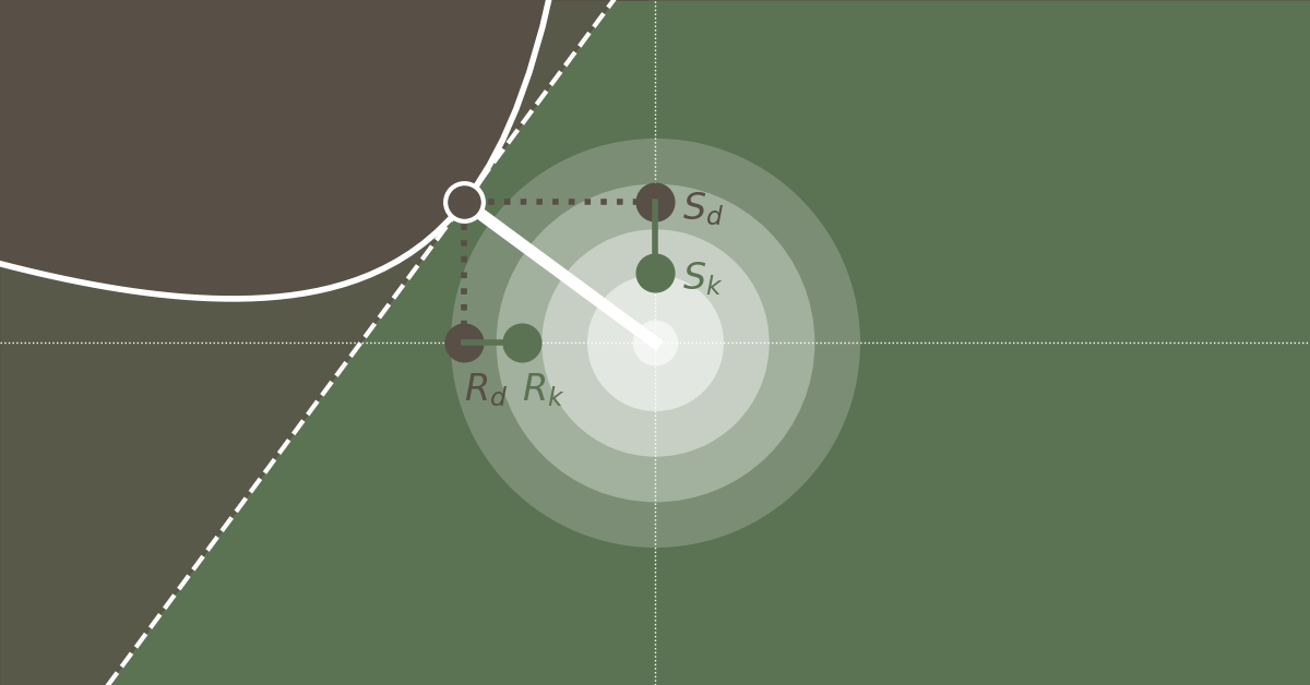 Above we defined the safety factors such that they are directly linked to the design point. Remember that at the design point, the limit-state function equals zero. However, also remember that the design point is just the most probable point within the failure domain — there exists actually an infinite number of points that all are associated with a zero value of the limit-state function. Any of these points could be used to derive safety factors that would result in an equally reliable design — actually any of these points would return the same design if applied within a semi-probabilistic design.